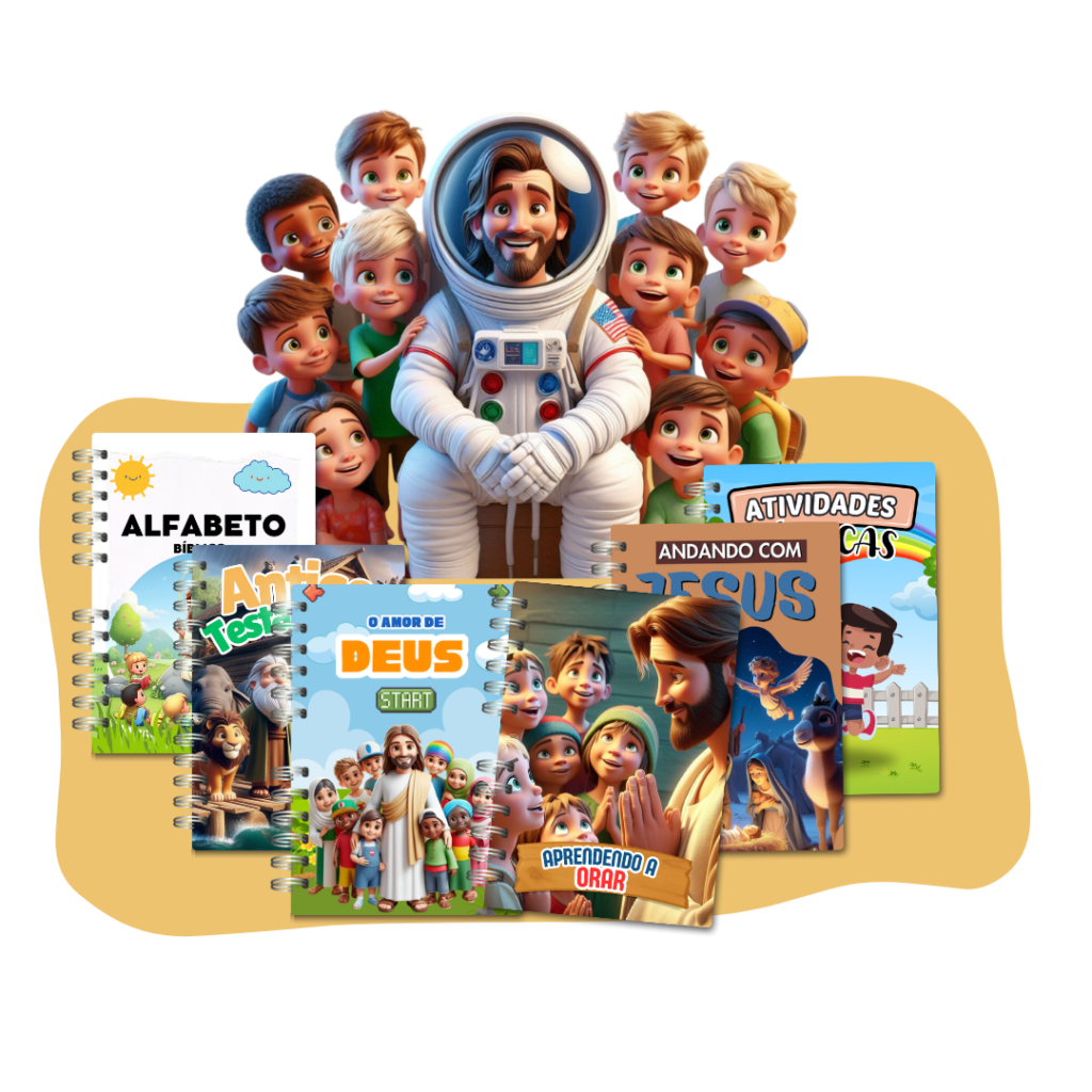 Um kit completo de atividades bíblicas em PDF, criado para ajudar pais a ensinarem a Palavra de Deus às crianças de forma: